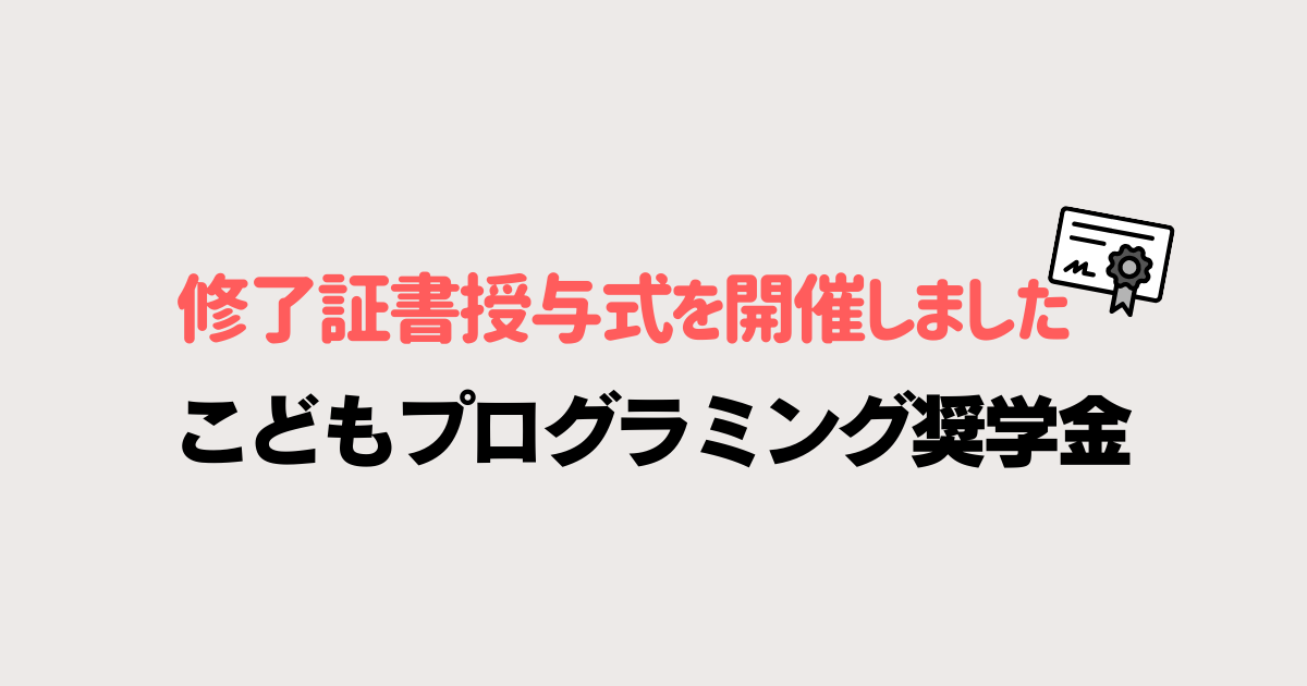 先日開催いたしました「修了証書授与式」をもって、今年度の活動を無事に終了いたしました。皆様のご寄付のおかげで、子どもたちはプログラミングを始めることができ、はじめての世界や一歩進んだプログラミングの世界に「挑戦する機会」を手にすることができました。活動を支えてくださった皆様へ、深く感謝申し上げます。今後とも、子どもたちの新たな挑戦を温かく見守っていただければ幸いです。